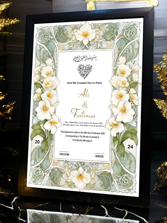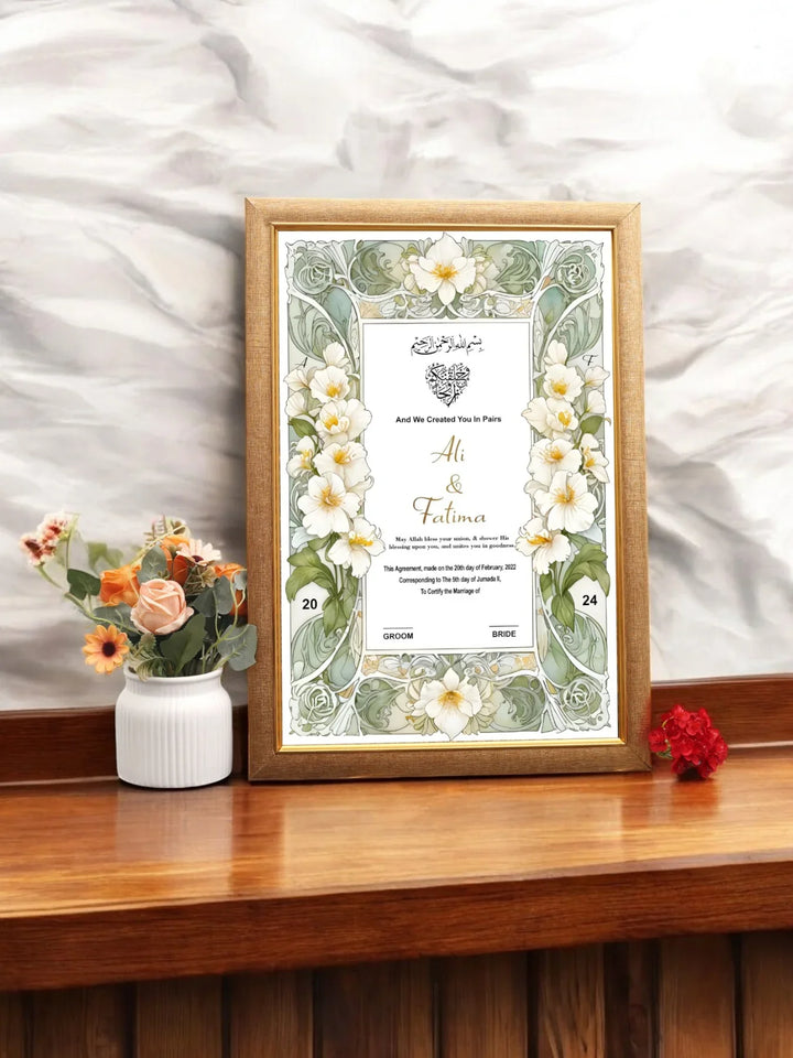 Jasmine Nikah Frame – Elegant Islamic Wedding Gift