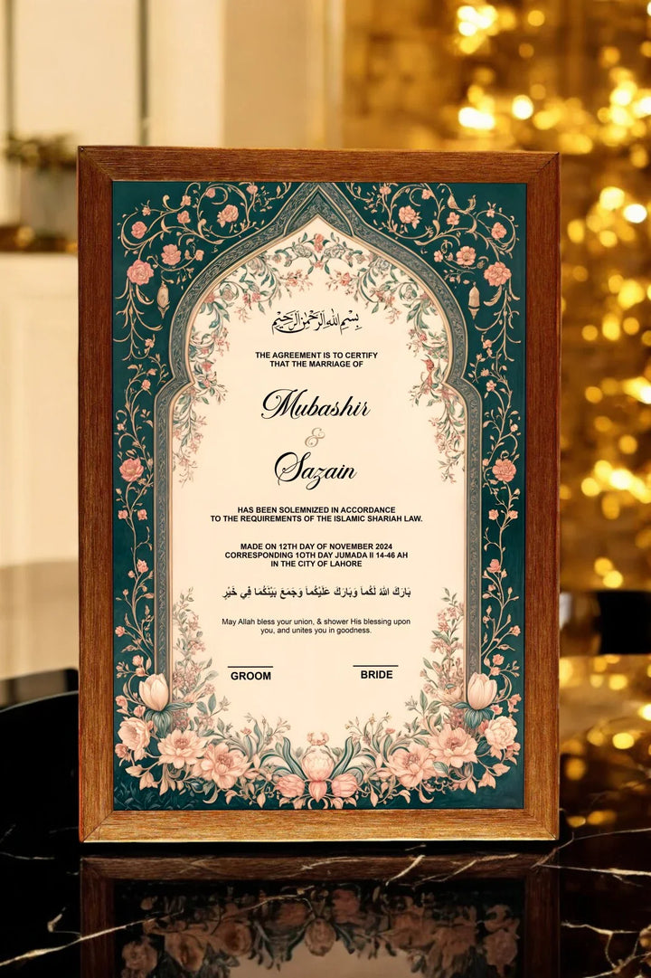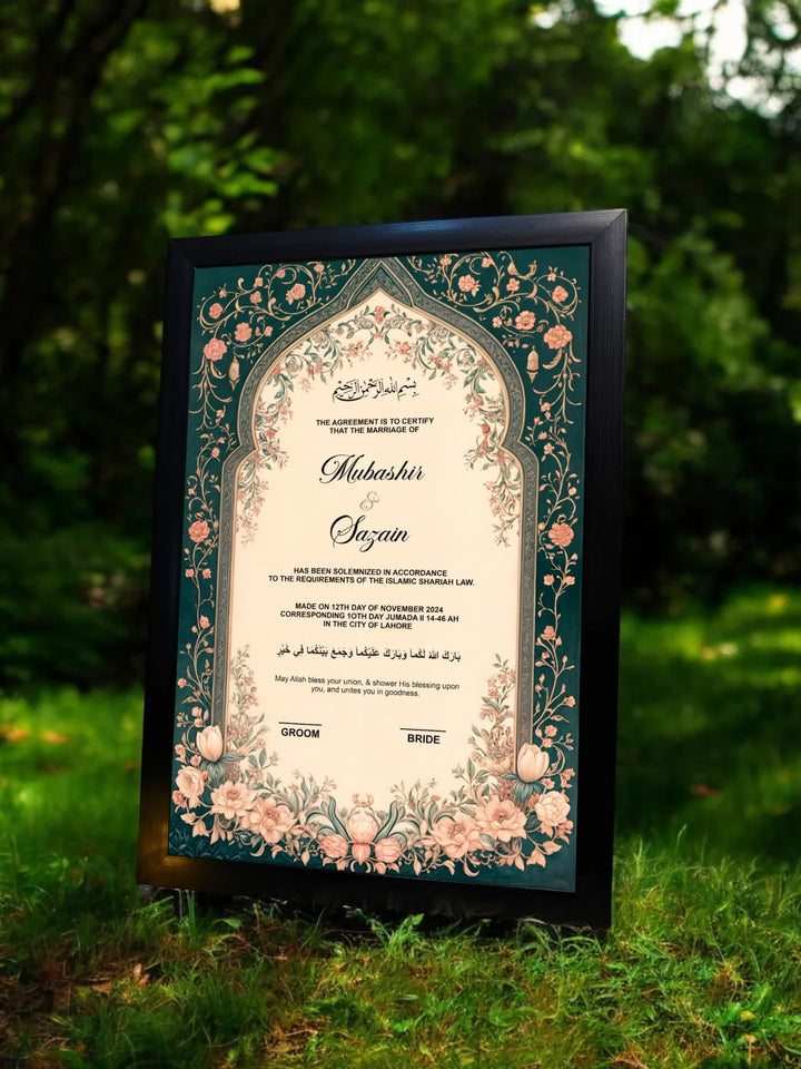 The Garden of Love Nikah Frame isn’t just a decoration — it’s a celebration of a love that continues to bloom under the light of faith. 🌿
