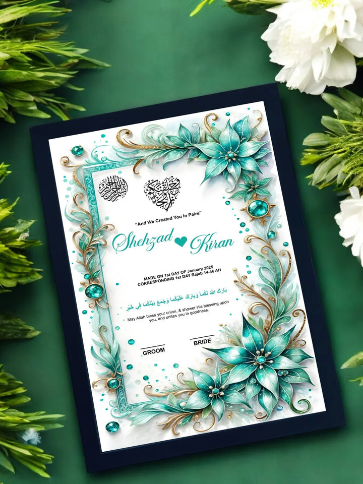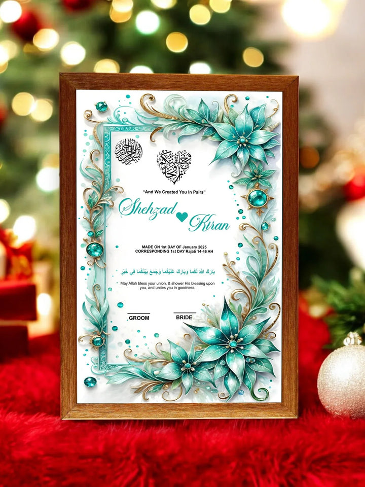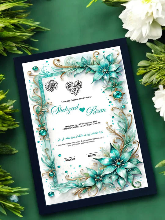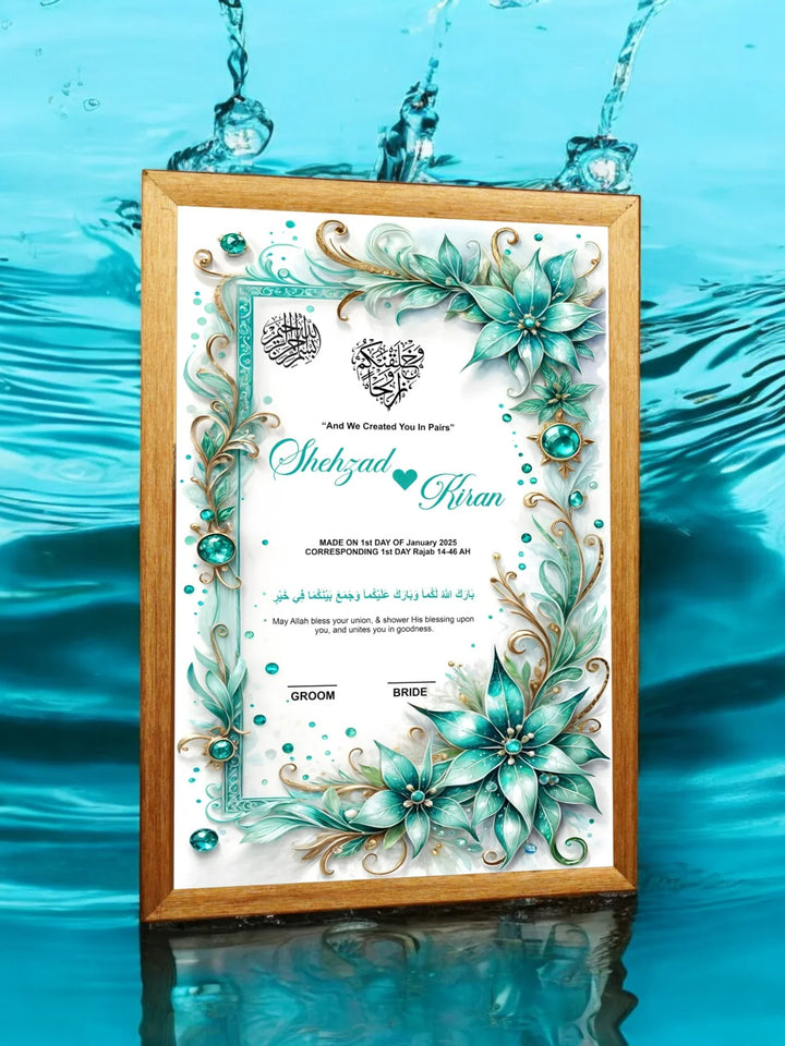 Fully personalizable with couple’s names, Nikah date, and Quranic verses or Duas