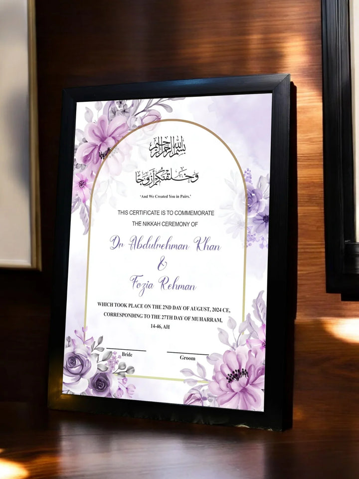 Lavender Nikah Frame – Custom Couple Wedding Gift