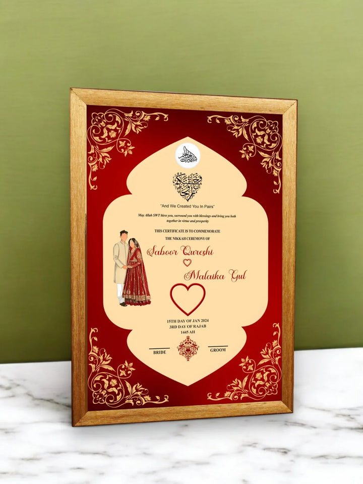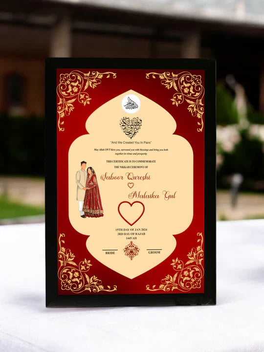Whether it’s your Nikah day, anniversary, or Valentine’s celebration, this elegant frame transforms your sacred vows into a timeless piece of art. The delicate design reflects both modern romance and Islamic elegance — perfect for couples who wish to display their love story with grace.