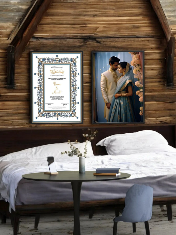 Celebrate the beauty of your sacred union with the Mandala Blue Magic Nikkah Frame, a stunning blend of spirituality, art, and love. Inspired by intricate Islamic mandala patterns and soothing blue hues, this frame symbolizes peace, harmony, and divine blessings — the essence of every Nikah.
