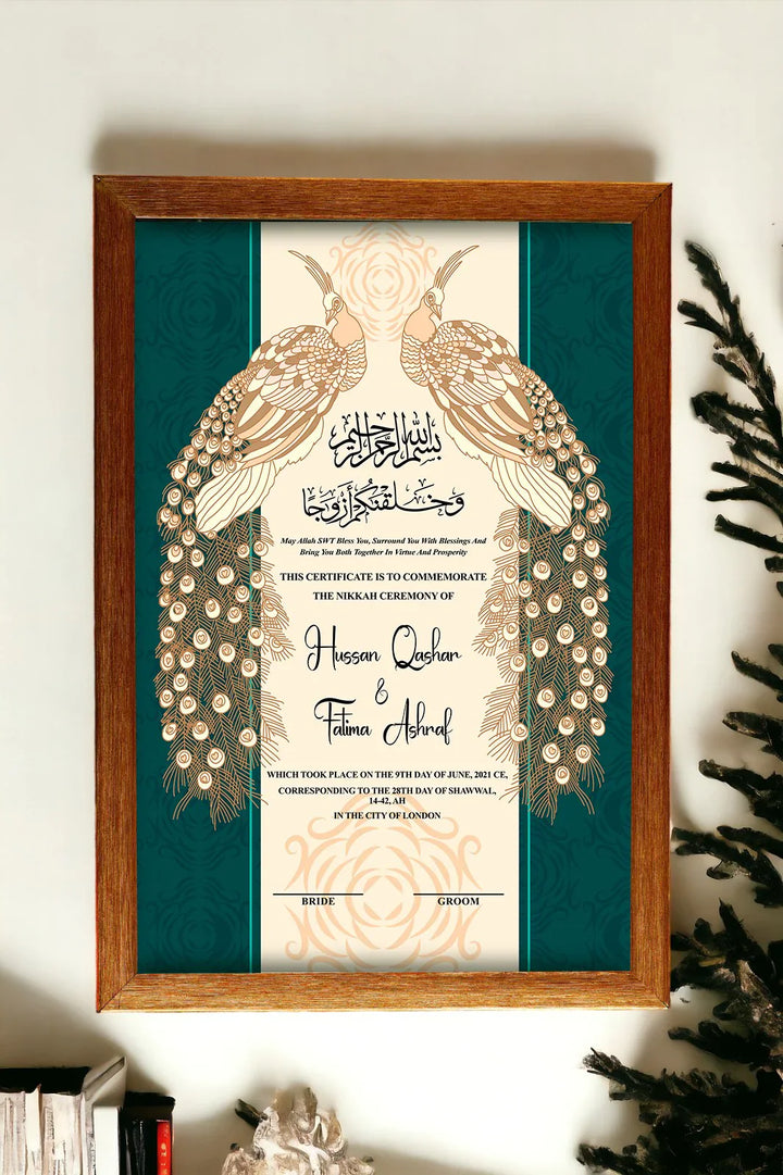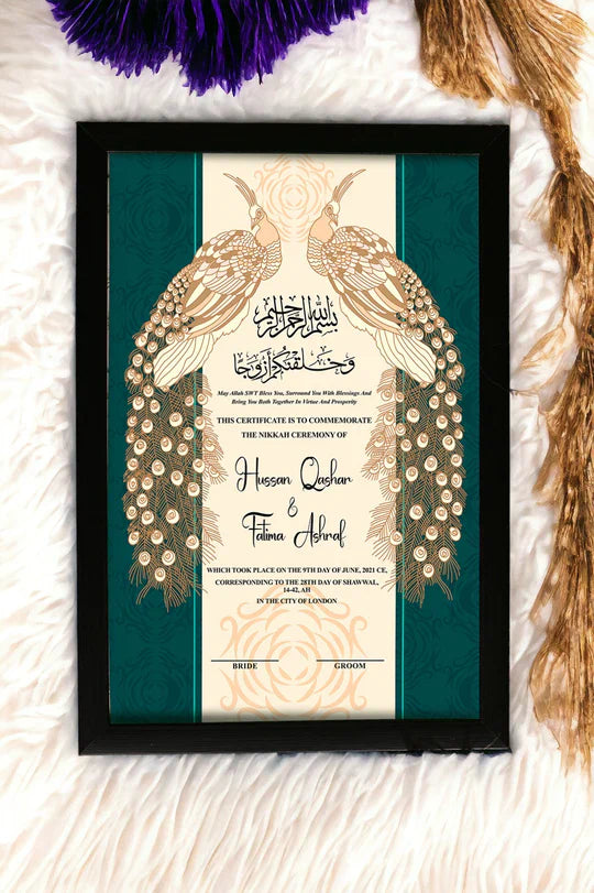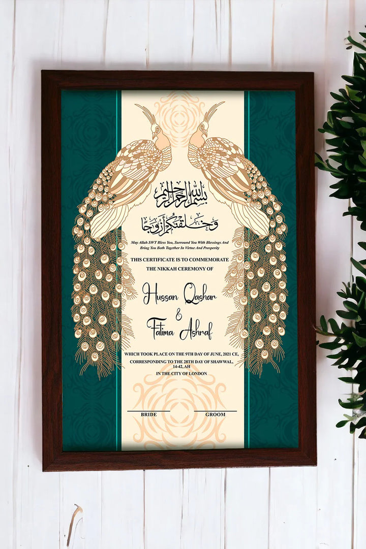 Premium Peacock Couple Nikah Frame