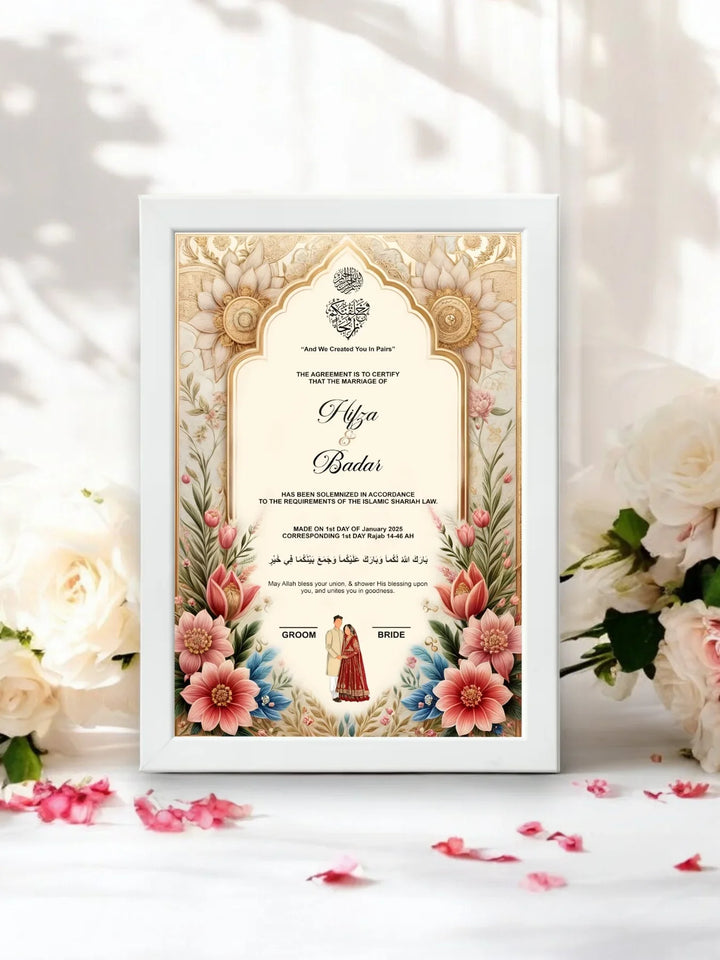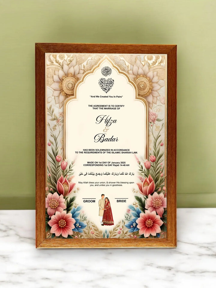 Print Pink Floral Nikah Frame – Luxury Personalized Wedding Gift