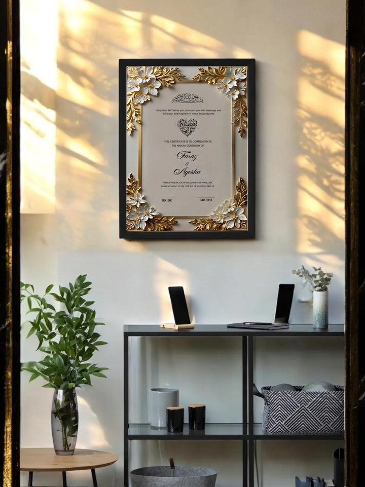 Each frame is fully customizable — personalize it with the couple’s names, Nikah date, and a Quranic verse or Dua to create a one-of-a-kind piece that beautifully preserves your most special moment.