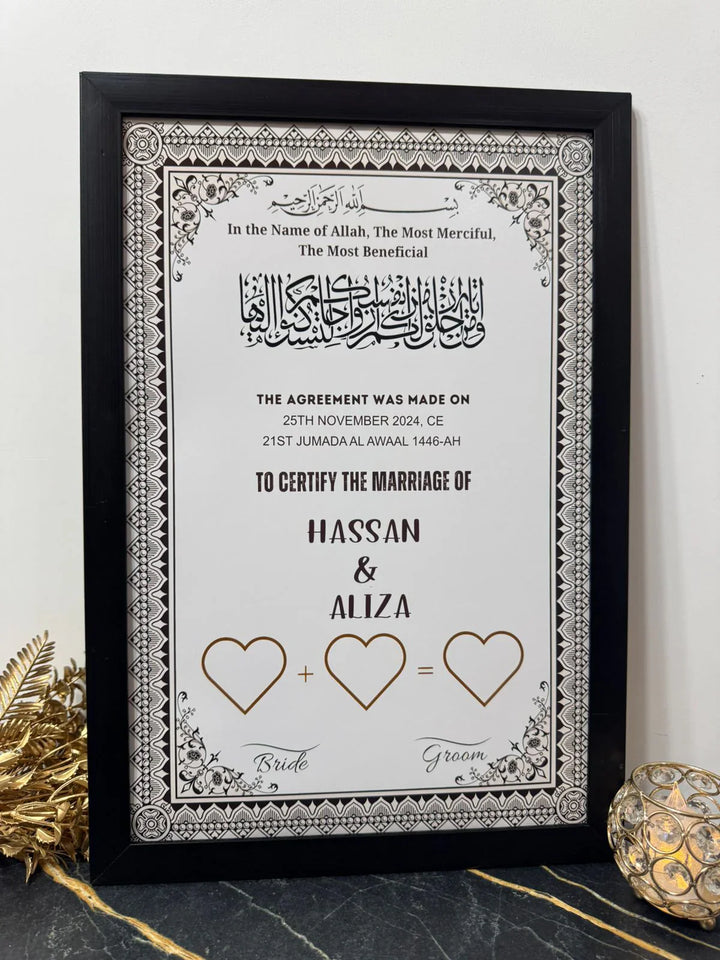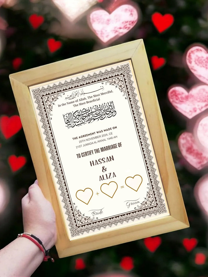 Customizable with names, Nikah date, and Quranic verse or Dua