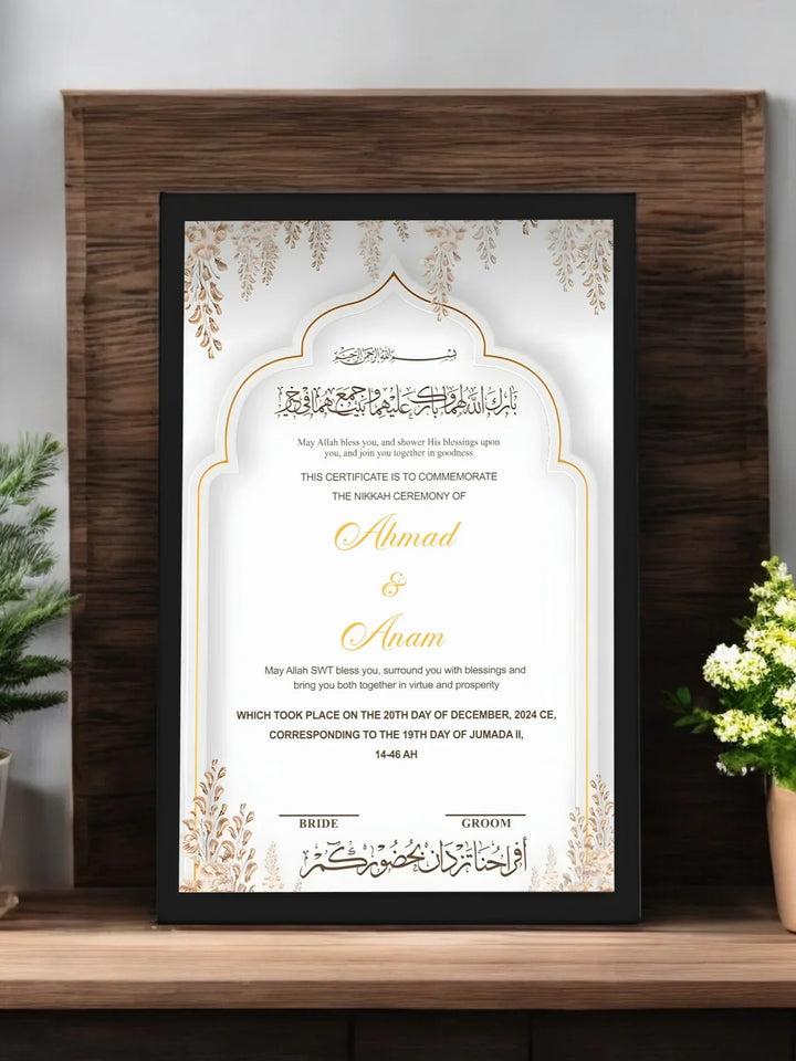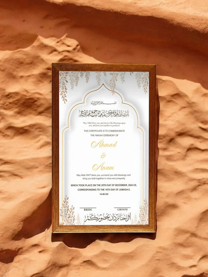 Customizable with names, Nikah date, and Quranic verse or Dua